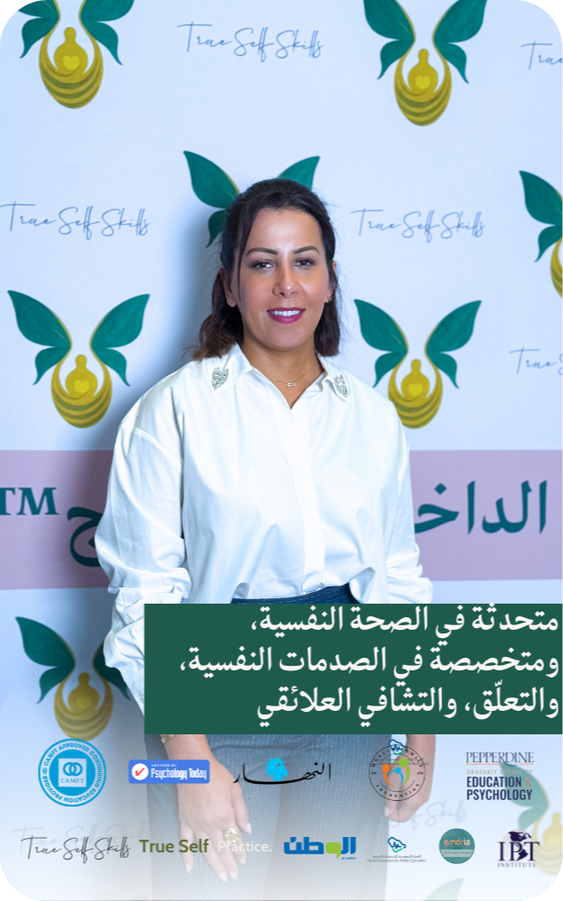 معالجة نفسية مُرخّصة في كاليفورنيا والسعودية، ومؤسسة عيادة الذات الحقيقية ومهارات الذات الحقيقية. يتركّز عملي على دعم النساء والعائلات والمجتمعات في التعامل مع الصدمات، وجروح التعلّق، وضغوط العلاقات، خصوصًا في الثقافات العربية والإسلامية. أستخدم أساليب علاجية مبنية على علاج إزالة التحسّس وإعادة المعالجة بحركات العين (EMDR)، والعلاج بأنظمة الأسرة الداخلية (IFS)، والعلاج المرتكز على التعلّق. أقدّم عملي باللغتين العربية والإنجليزية.